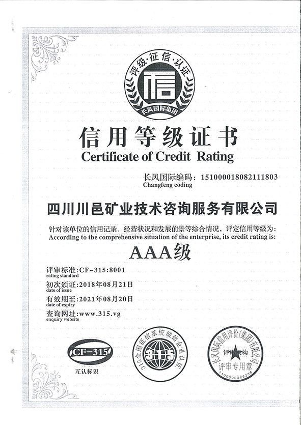 信用等級證書